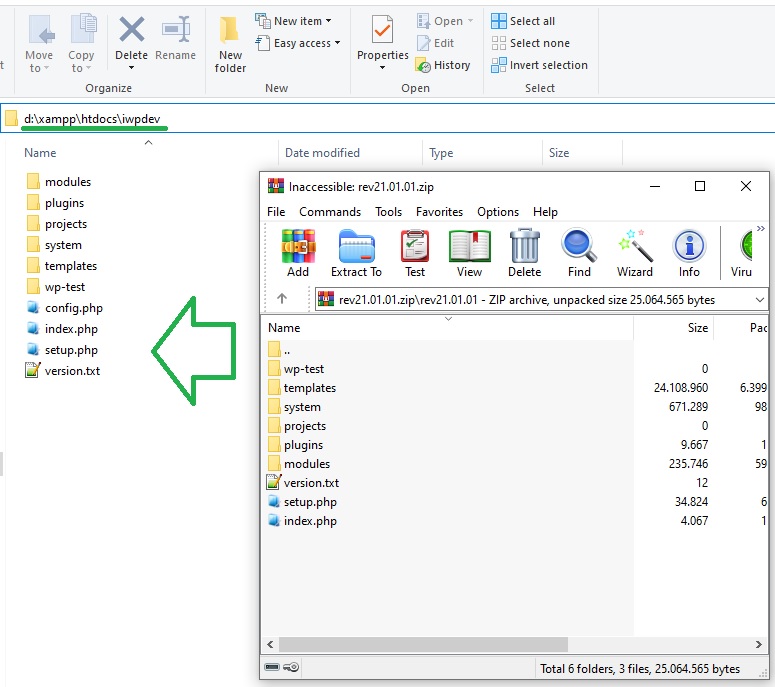 Please extract your iWP-Dev Toolz v2 file (rev21.xx.xx.zip) using winrar/winzip/7zip/tar and copy it into your webroot folder, example: d:/xampp/htdocs/iwpdev