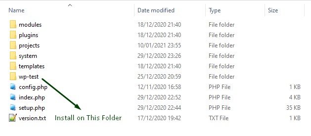 Here you are also asked to install WordPress CMS for Live Test in the wp-test folder, please install your WordPress there.