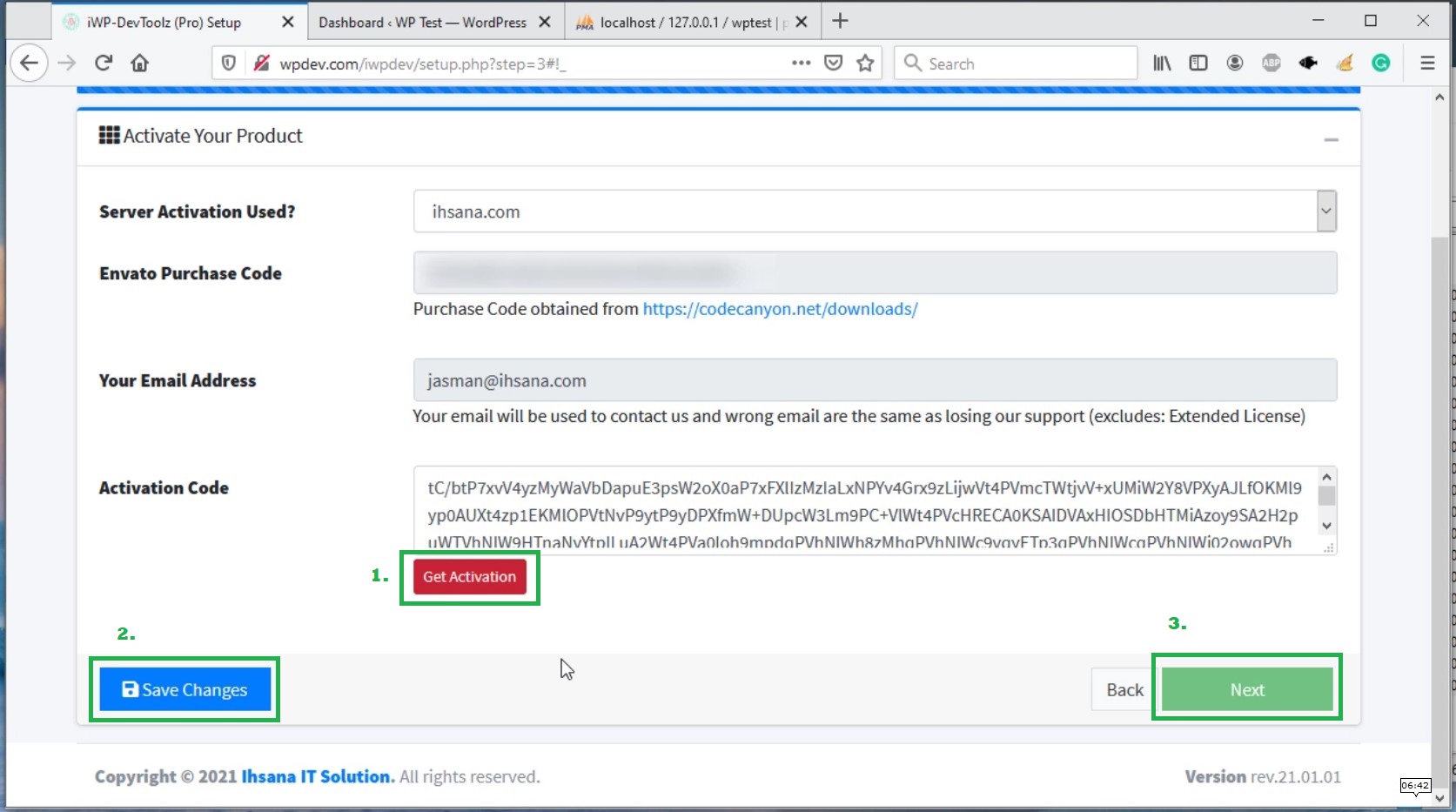 Then you click the Get Activation button, wait until you get the activation code, then click Save Changes button and click Finish/Next button
