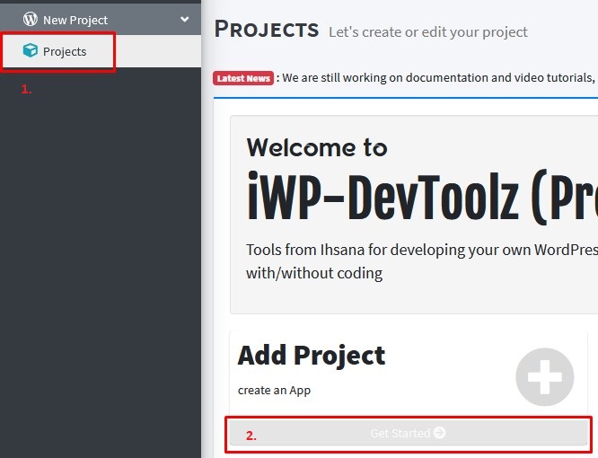 Goto Project page by clicking Projects menu on side menu, then we click Get Started in the Add Project box.