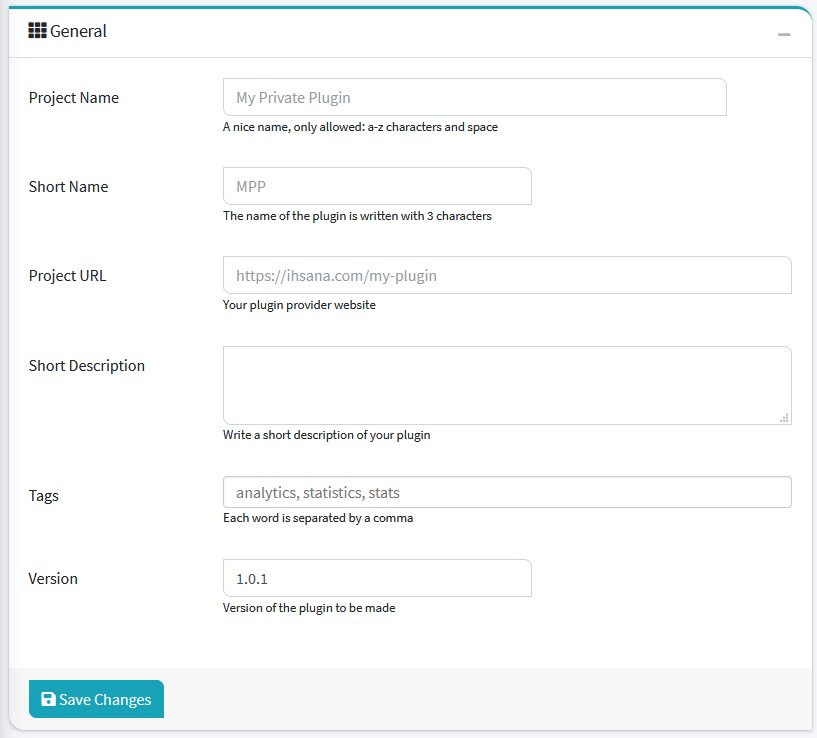 | Project Name | A nice name, only allowed: a-z characters and space | My Private Plugin |