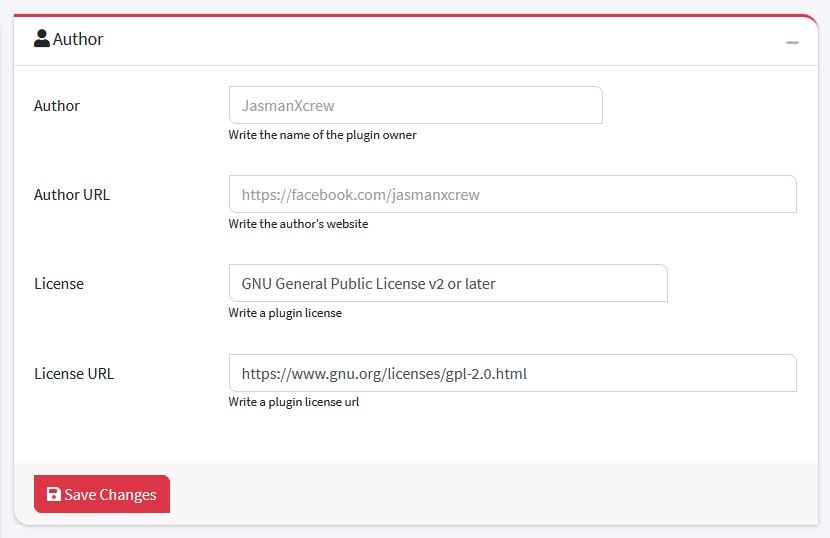 | Author URL | Write the author's website | https://facebook.com/jasmanxcrew |