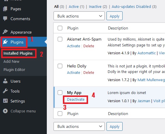 Login to your WordPress Dashboard and go to Plugins Menu then click Installed Plugins, please deactivate your plugin and activate your plugin again.