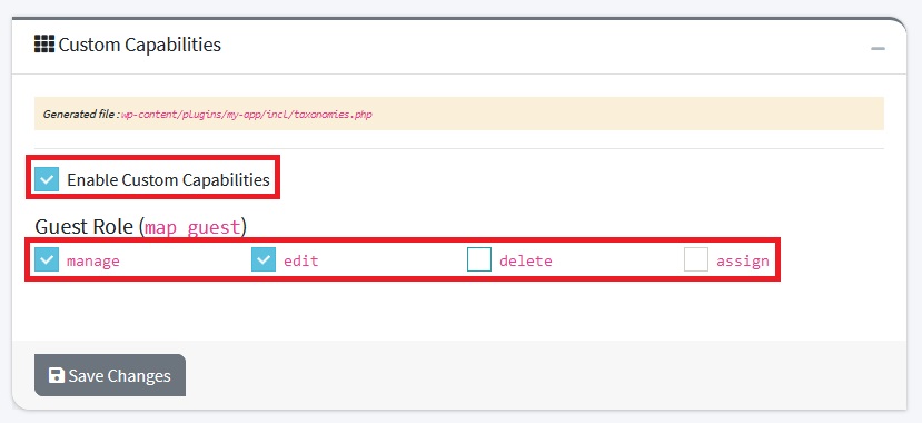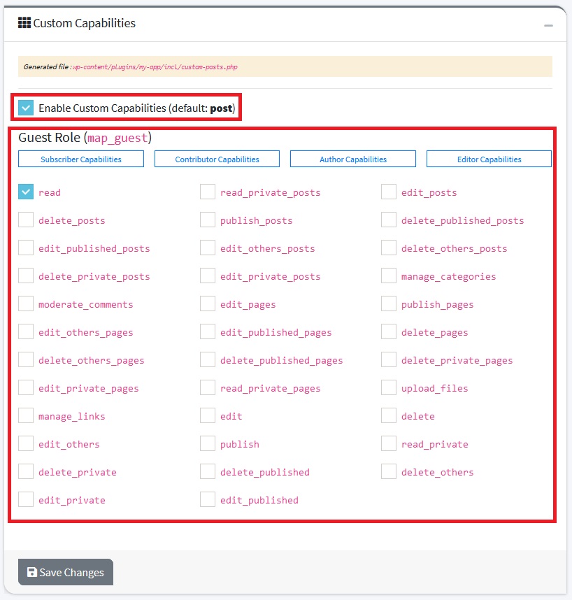If you want to use Custom User Roles please check Enable Custom Capabilities and select the desired role.