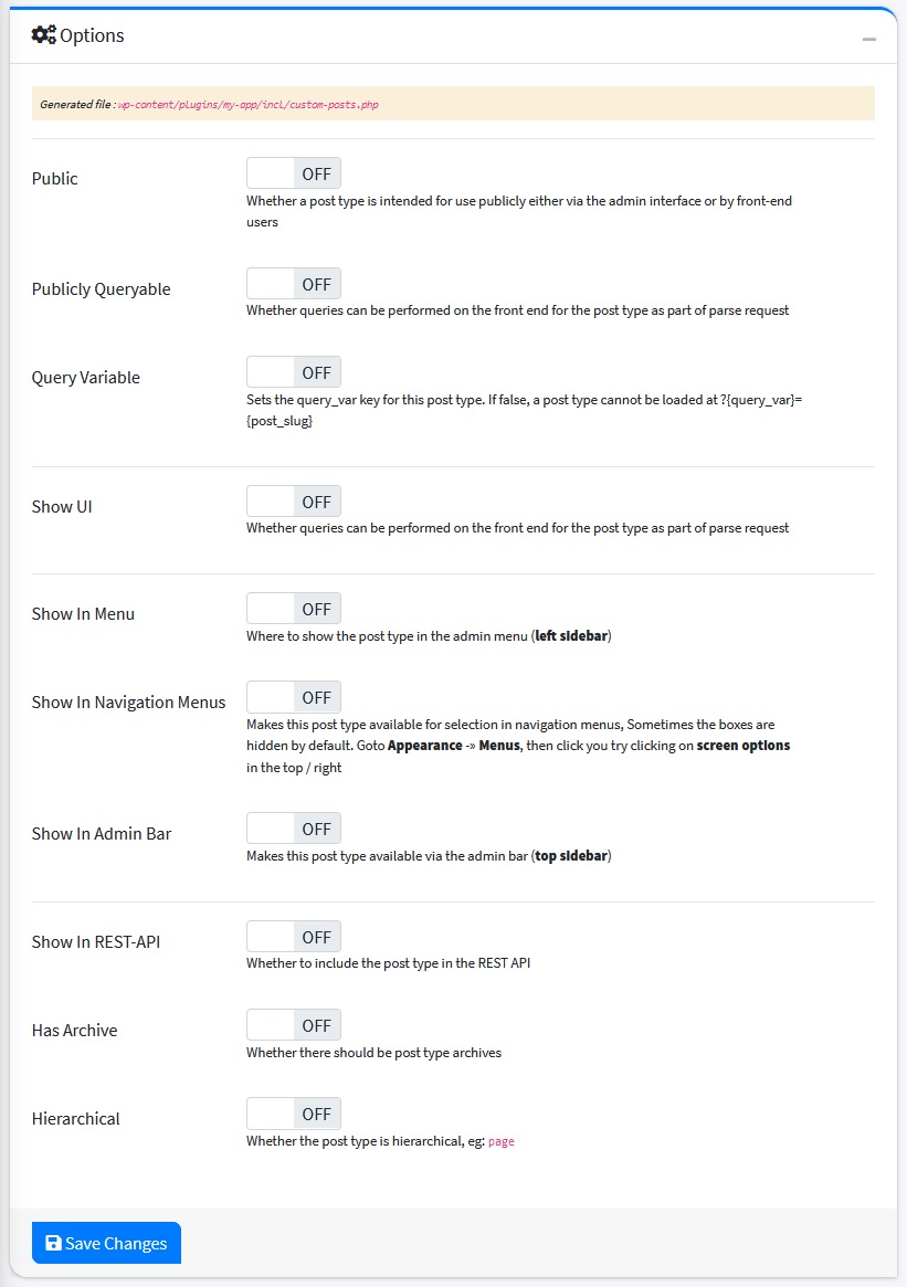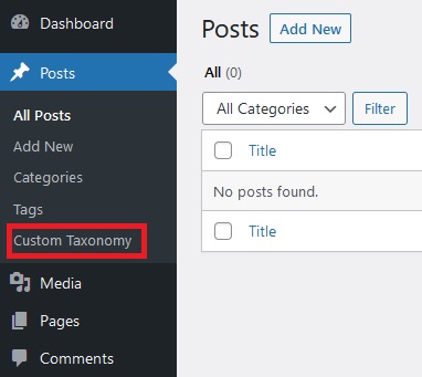 | Show Admin Column | Whether to display a column for the taxonomy on its post type listing screens | ON |