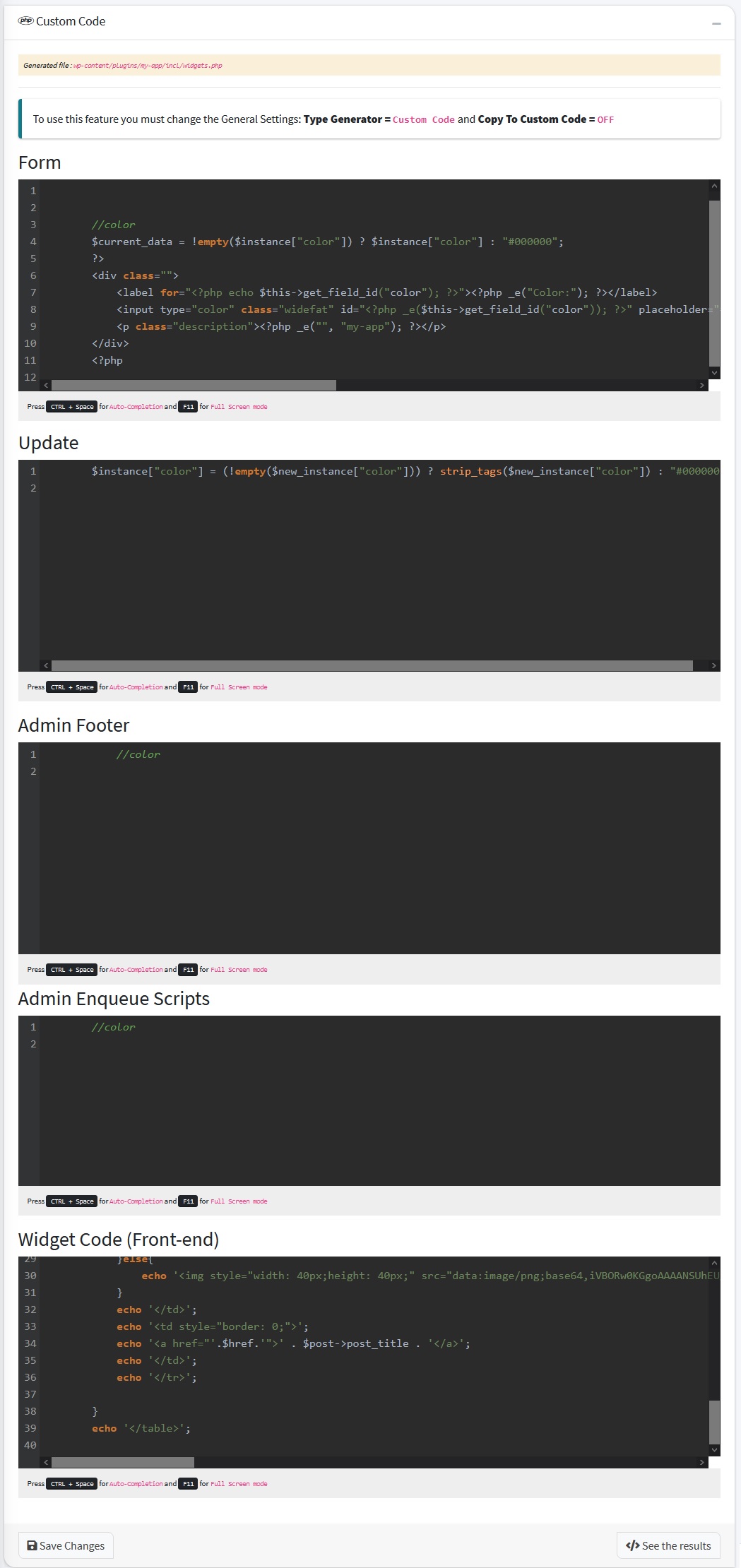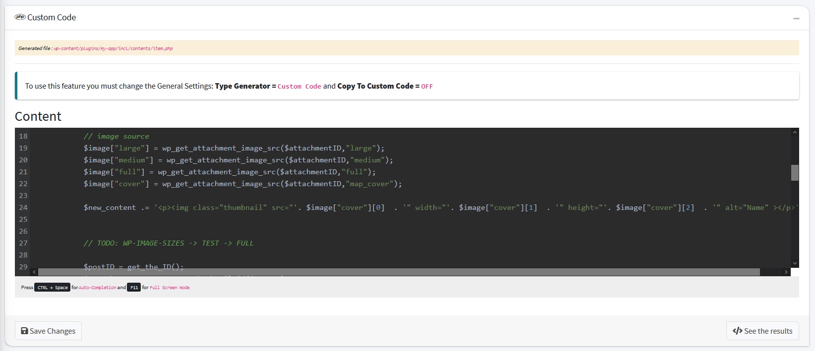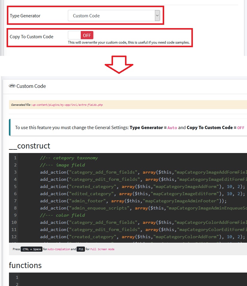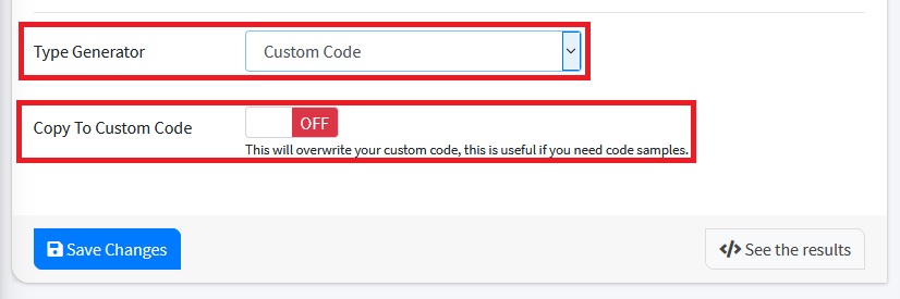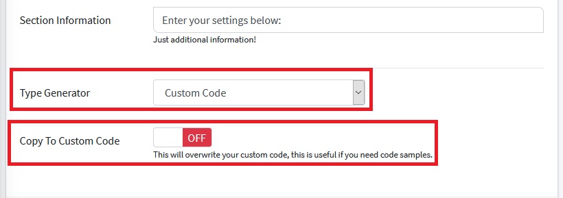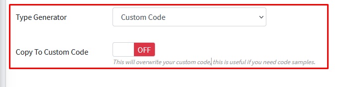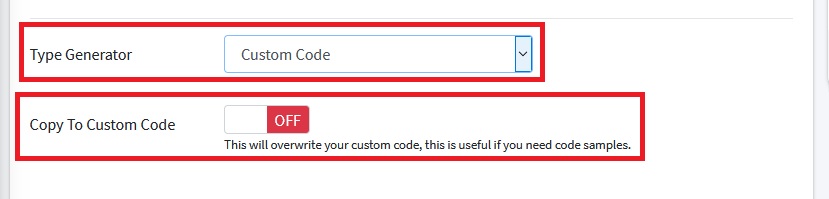 Type Generator = Custom Code and Copy To Custom Code = OFF, after the settings are changed, you can edit the code in Custom Code Box