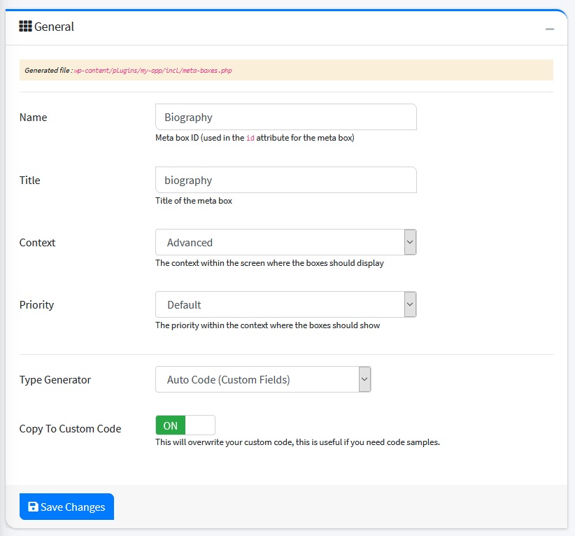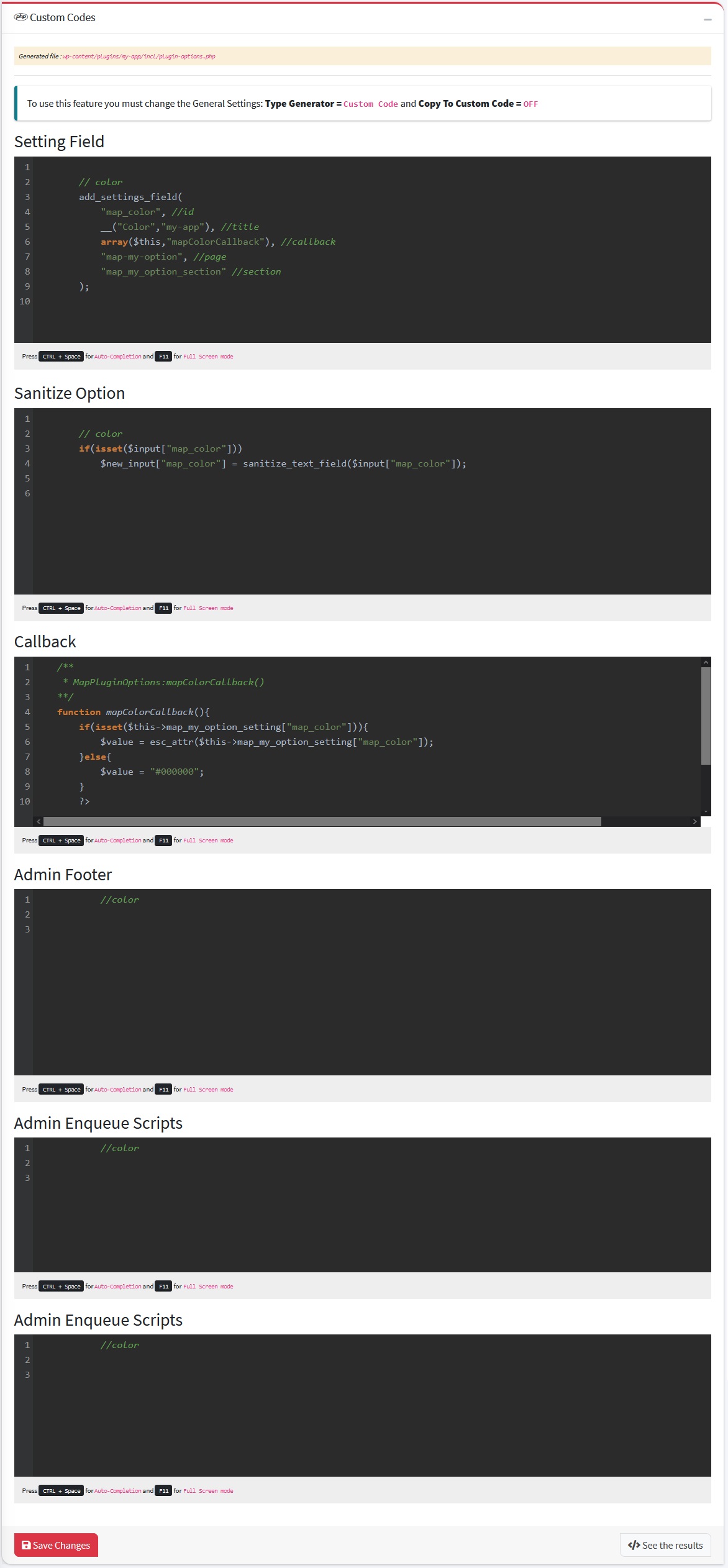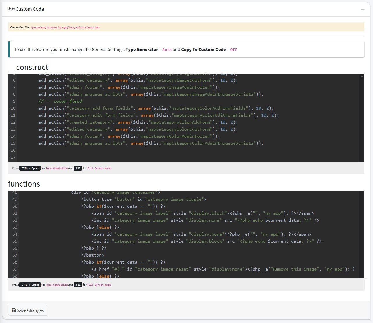 Type Generator = Custom Code and Copy To Custom Code = OFF, after the settings are changed, you can edit the code in Custom Code Box