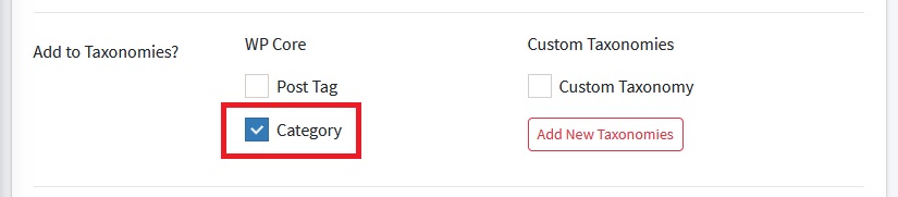 | Add to Post Types? | Adding Custom Taxonomy to WordPress default Post type | Post |