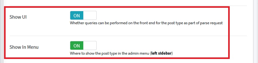 | Show UI | Whether to generate and allow a UI for managing terms in this taxonomy in the admin | ON |