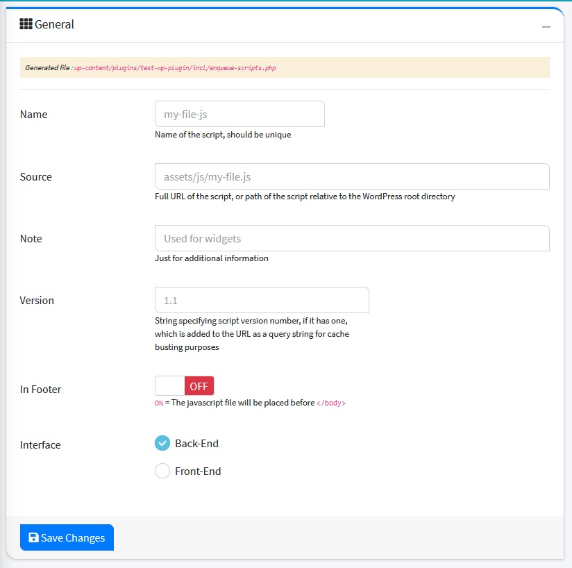 You can add scripts to your short-code, you just need to tick Javascript File or CSS Style File. and the same goes for the shortcode replacement code (content render), you just need to add what code samples you need. Sample code will be generated automatically .