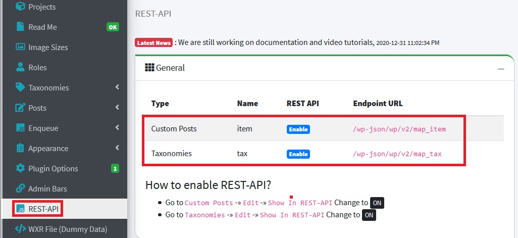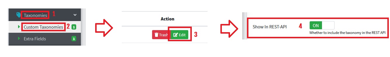 | Show In REST-API | Whether to include the taxonomy in the REST API | ON |