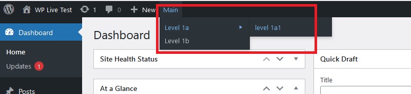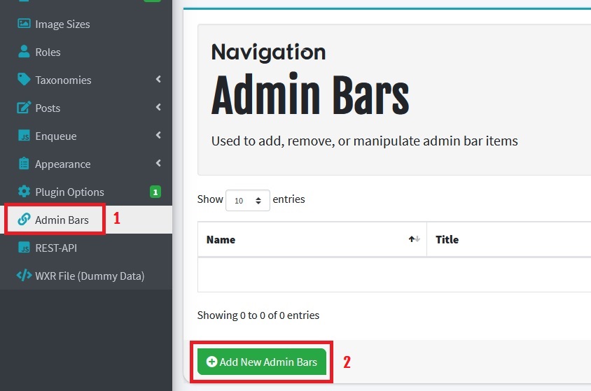 Login to your WordPress Dashboard and The admin bars that you created should already be in the top menu.